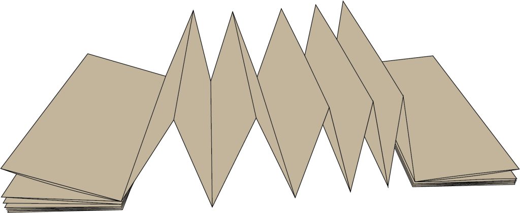 Maya codices are screen-folded manuscripts made from bark paper, typically in the form of a rectangular book. Multiple sheets were joined and folded in such a way that they appeared like an “accordion”. (Figure 3) The front covers of Maya codices may have been wooden boards coated in stucco and possibly decorated with plant-based pigment. Although no surviving codex has its original cover, evidence from the Madrid Codex shows that it was once bound to another volume. The Dresden Codex also shows evidence that it once had covers, but since the covers would have been from organic materials, they would have decomposed over time. Regardless, the Maya codices were most likely to have been bound in between covers decorated in vibrant pigment and possibly wrapped in jaguar pelt since the jaguar was seen as a powerful symbol for power and divine authority by the Maya. The codices were also commonly depicted with a jaguar pelt on vases. The Maya glyph for “book” is also depicted as a bundle sandwiched between two layers of “jaguar skin”. (Figure 4) The concept of wrapping sacred knowledge in jaguar skin would align much with ancient Maya practices since these codices were considered sacred items and used in rituals by high-ranking priests.